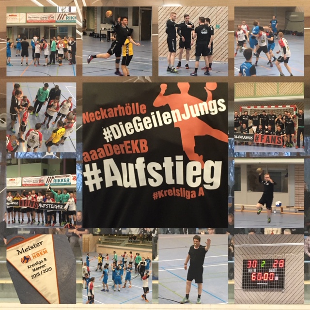 Besigheim – (ashr) Als Meister und Aufsteiger in die Kreisliga A reisten Spieler und zahlreiche Fans zum letzten Saisonspiel nach Affalterbach. In einem abwechslungsreichen und phasenweise hektischen Spiel – in dem es um nix mehr ging – konnte der Tabellenzweite dem EKB die zweite Saisonniederlage zufügen. Die 30:28 Tore Niederlage tat der guten Stimmung im EKB Block in der mit über 100 Zuschauern gefüllten Sporthalle keinen Abruch.