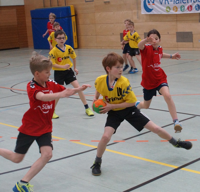 Der Spieltag war sehr gut besucht und rund 60 Kinder hatten bei den vielfältigen Spielformen viel Spaß und zeigten neben 4+1-Handball sowie einer weiteren Teamspielform was Sie können. In den Spielpausen absolvierten die Kinder verschiedene Koordinationsparcours. Für das leibliche Wohl war durch das EKB-Bewirtungsteam gemeinsam mit den Eltern gesorgt. Vielen Dank allen Helfern und der VR Bank Neckar Enz für die Tolle Unterstützung!